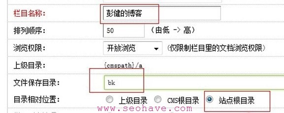 所以我们要让网站跟搜索引擎更友好,我们便需要作出一些优化的设置,分别为:栏目文件名,目录相对位置。如下图: