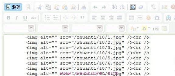 最后我们在dw里面编辑一系列图片的代码,并把代码复制到文章中具体操作为:点击织梦编辑框左上角的源码按钮,然后把代码粘帖进去。如下图: