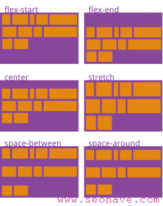 justify-content: flex-start | flex-end | center | space-between | space-around;